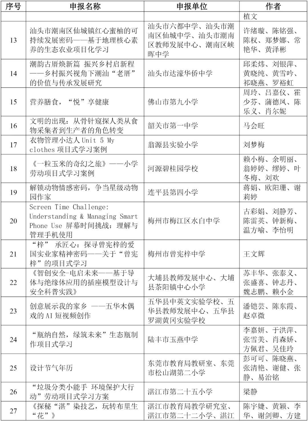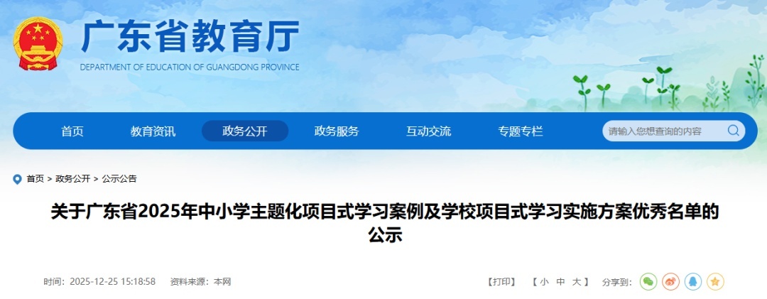 快看!省教育厅公示广东省2025年中小学主题化项目式学习案例及学校项目式学习实施方案优秀名单啦! 手机股票配资网