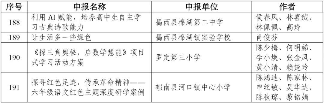 根据《广东省教育厅关于征集全省中小学主题化项目式学习案例及学校项目式学习实施方案的通知》要求,经过公开申报、地市推荐、专家评审、评审领导小组复核等工作程序,初步确定广东省项目式学习优秀案例共745份,其中学科类191份,跨学科类341份,超学科类95份,学校项目式学习实施方案优秀方案118份。现予公示,公示期为2025年12月25日至2025年12月30日。公示期内,如对公示名单有异议,请以书面形式向省教育厅反映,并提供联系方式、异议事项证明材料等。