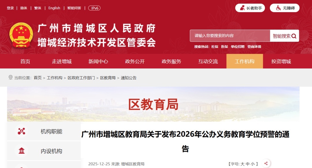 广州增城发布公办义务教育学位预警